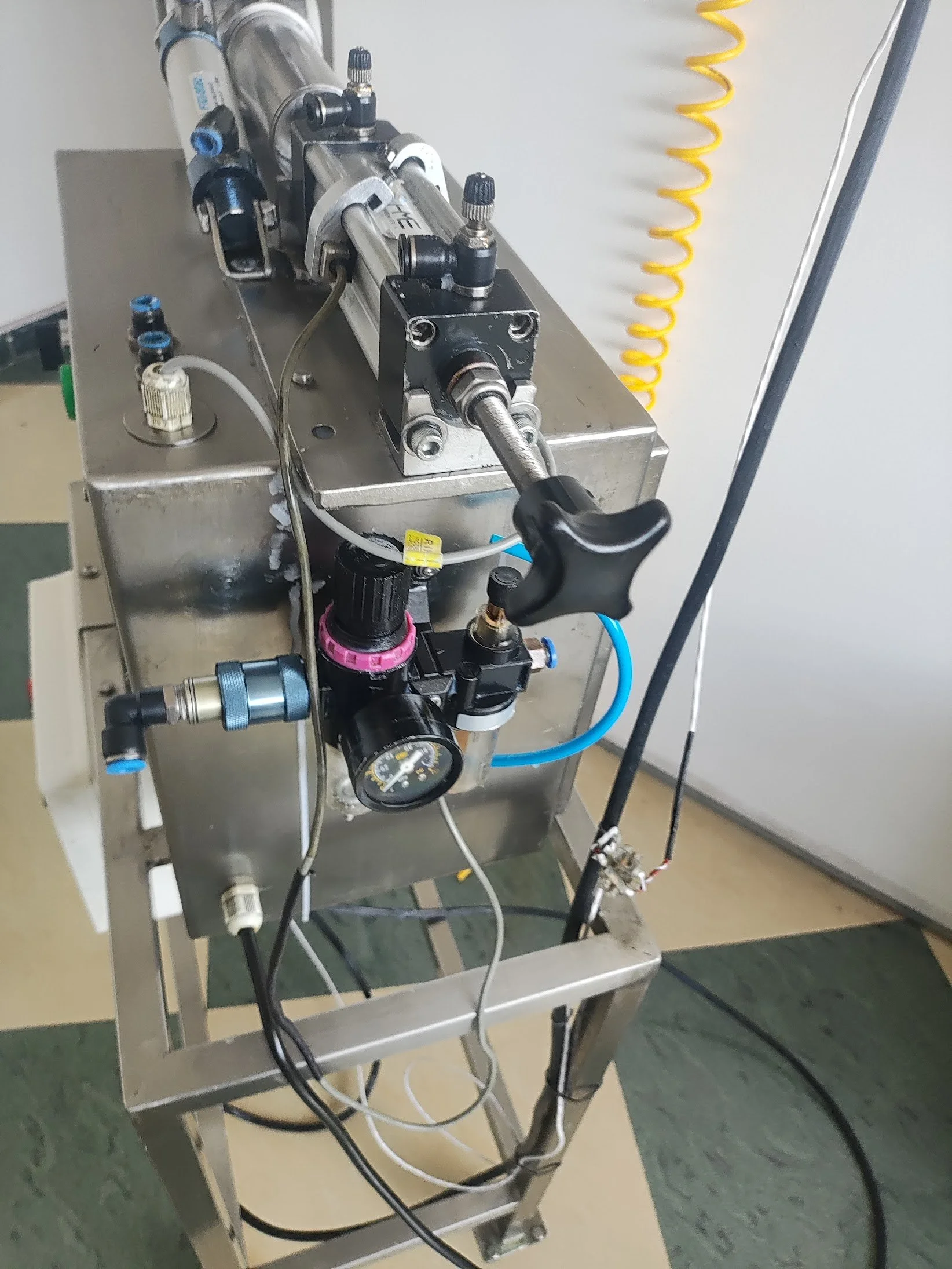 20Maquina dosificadora de liquidos 20....220°C Diseñada para procesos industriales exigentes, nuestra máquina dosificadora permite el manejo eficiente de líquidos en un amplio rango de temperatura, desde 20°C hasta 220°C, garantizando estabilidad y precisión en cada ciclo. Su sistema de dosificación mediante botella, accionado por un cilindro neumático, asegura un control exacto del volumen dispensado, incluso en fluidos de alta viscosidad.